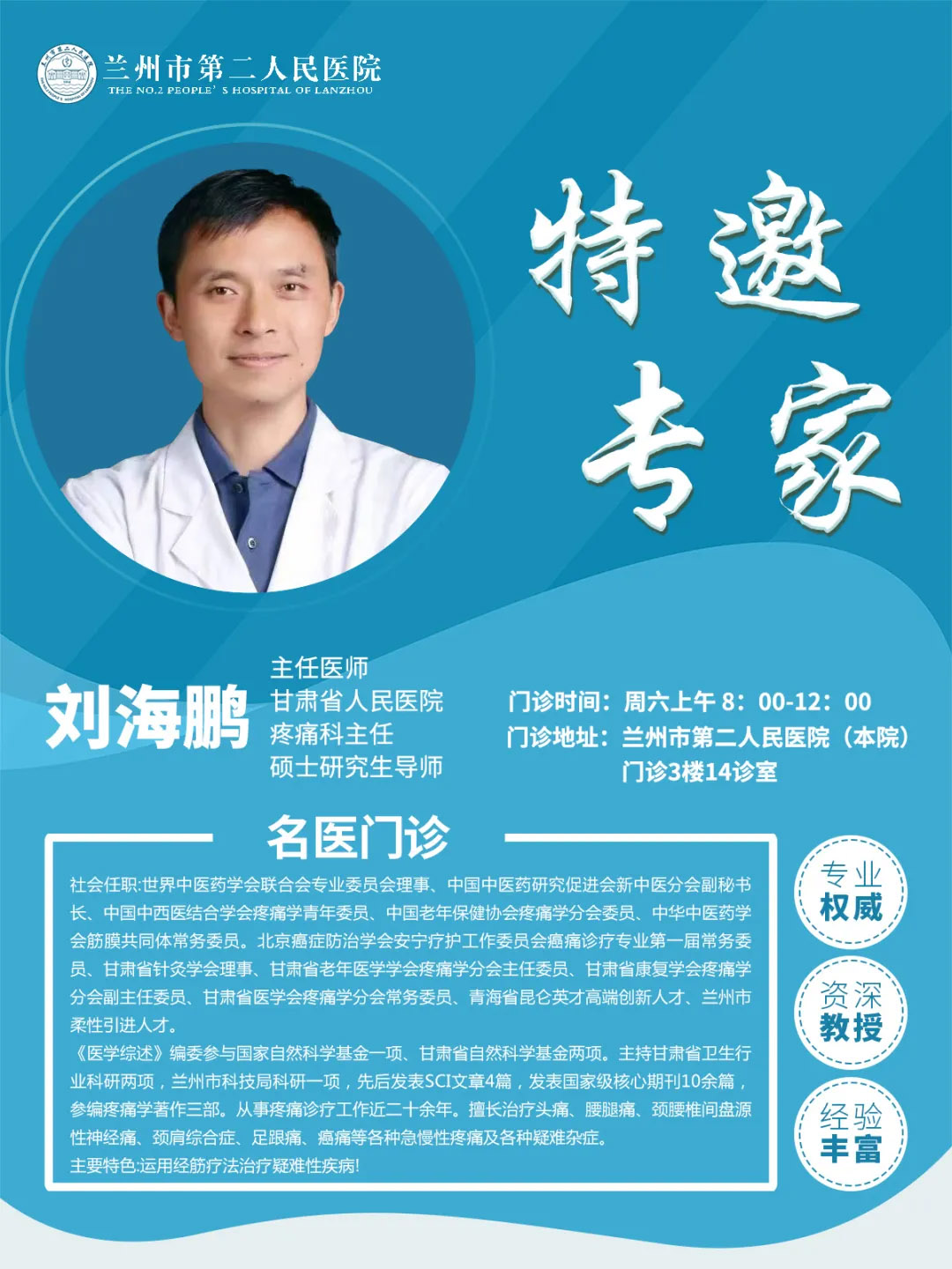 门诊地址:兰州市第二人民医院(本院)门诊3楼14诊室